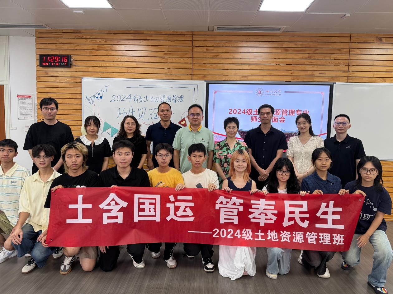 9月26日上午,四川大学公共管理学院2024级土地资源管理专业师生见面会于第一教学楼C103教室温情启幕。土地资源管理系朱红波老师、李敏老师、廖喜生老师、马爱慧老师、唐鹏老师、董欢老师、赵茜宇老师、饶永恒老师、余超老师携2024级土地资源管理专业全体新生齐聚一堂,共赴这场满含期待的初见之约,为这段崭新的专业旅程写下温暖开篇。