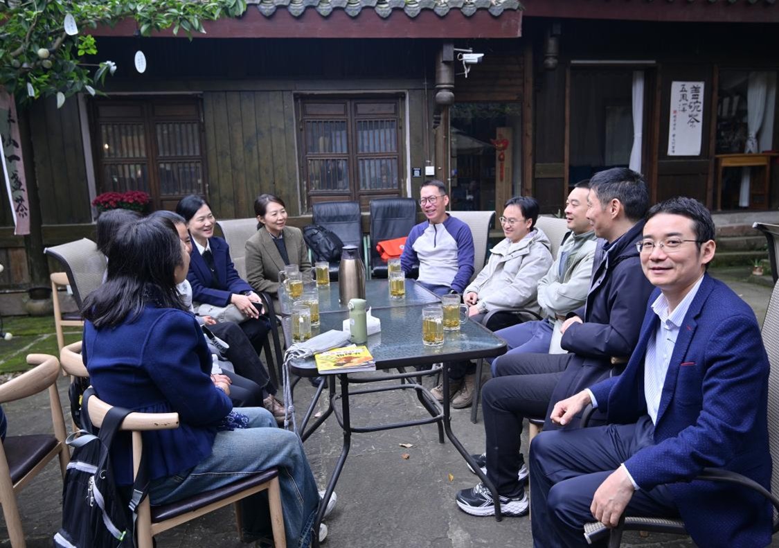 活动中,教师们漫步青石板路,游览贺麟先生故居,在古韵悠然的院落中感受人文气息。随后,大家择一处茶舍小憩,品茗畅谈。秋阳和煦,茶香袅袅,现场欢声笑语不断,老师们就工作生活、教学科研等话题展开轻松交流,气氛温馨而热烈,平日里忙碌的身心在古镇的静谧与茶香中得到充分放松。