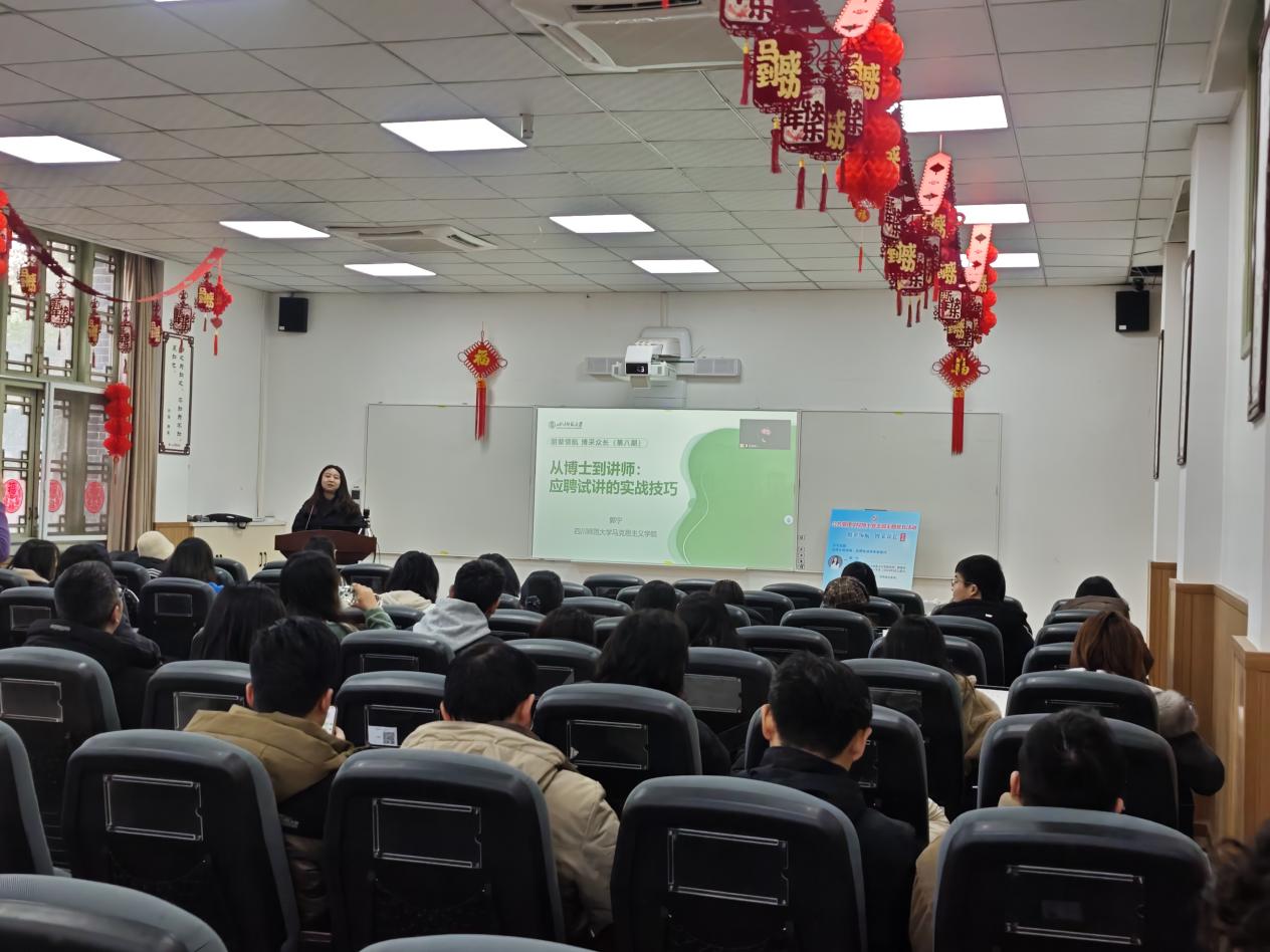两位优秀学姐结合自身经历,聚焦青年学者发展路径进行了分享。郭宁老师以《从博士到讲师:应聘试讲的实战技巧》为题,从学校优势、试讲技巧到教学方法,全景式分享了自身的求职与工作心得,鼓励同学们通过不懈努力,走好站上讲台、站稳讲台到站好讲台的每一步。