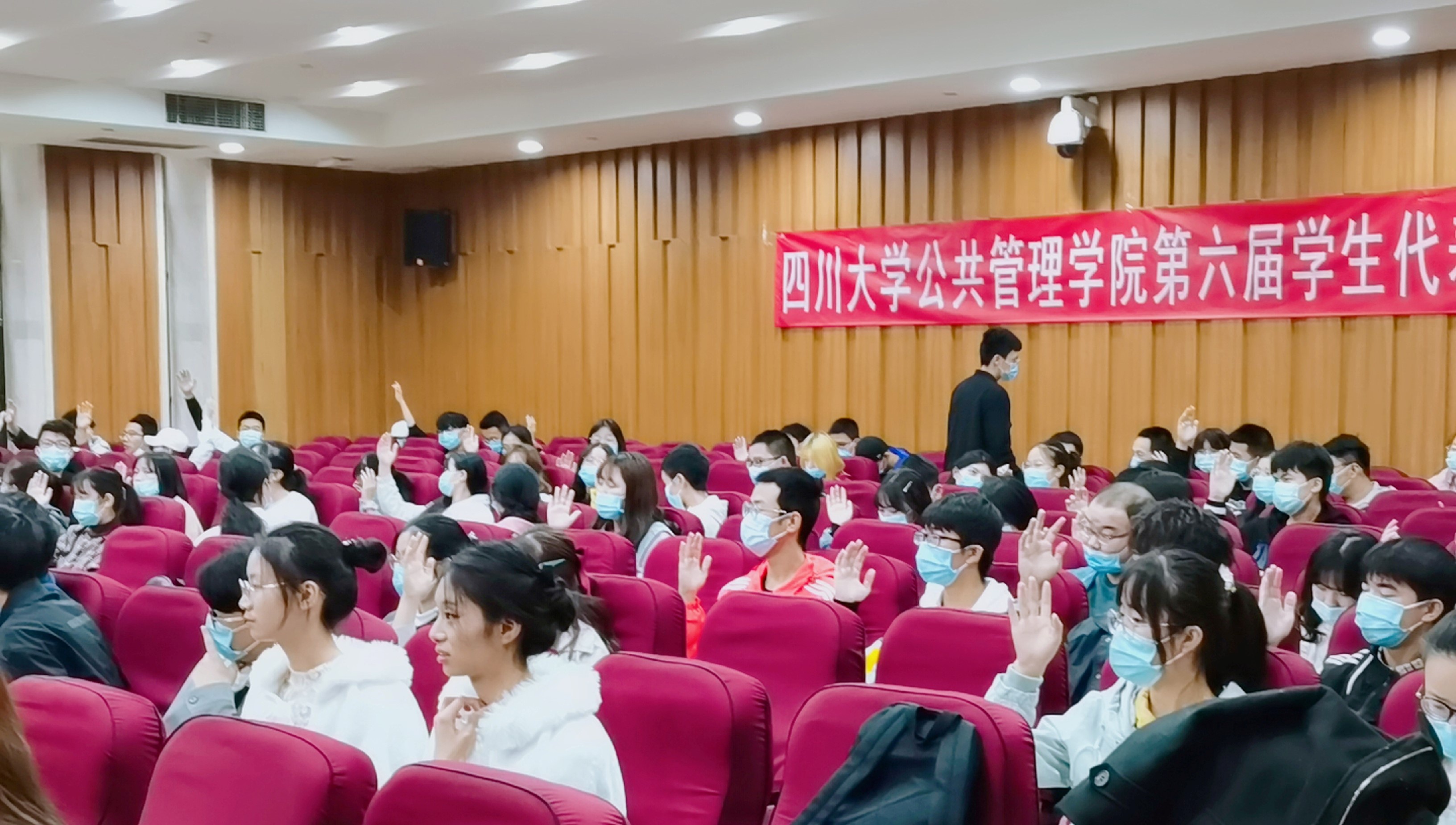 2020年10月17日上午,公共管理学院第六届学生代表大会在江安校区 文科一区报告厅举行。本次参会的学生代表均经过个人自荐、组织推荐、班级选举等程序严格推选产生。本次大会应到代表88人,实到84人,请假4人。代表们听取了学生会改革方案,对《公共管理学院团委学生会2019-2020学年工作报告》、院学生会主席团换届人员、执行团换届人员、部长团换届人员进行了审议,并对《公共管理学院学生会章程修订条例》《公共管理学院学生会制度修订条例》及《公共管理学院学生会干部换届名单》进行了审议。学院党委副书记兼纪委书记杨磊、学院团委书记青杨媚、2018级辅导员刘晓燕、2019级辅导员刘碧作为特邀嘉宾列席了本次学代会。