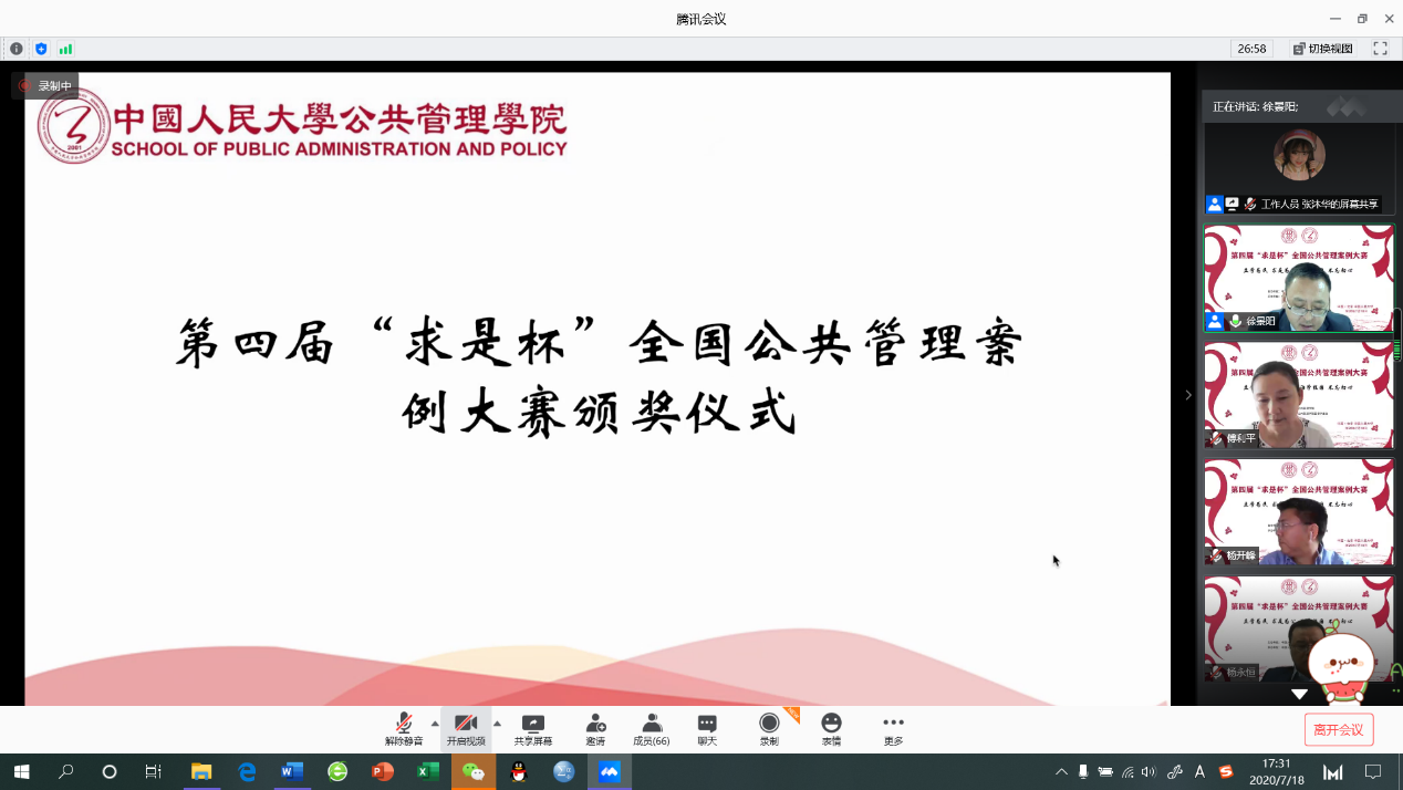 2020年7月18日下午,第四届“求是杯”全国公共管理案例大赛决赛在“云端”举行。(受新冠肺炎疫情影响,第四届“求是杯”复赛以及决赛均于线上举行)