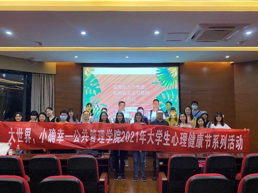 2021年5月19日19:00,“大世界、小确幸”公共管理学院2021年大学生心理健康节“赠你一些小知识”系列讲座之应对压力与焦虑:如何真正爱和接纳自己在望江校区工学图书馆五楼报告厅成功举办。四川大学公共管理学院社会学与心理学系副教授李诗颖老师应邀担任本次讲座嘉宾。本次讲座由公共管理学院党委副书记杨磊老师主持,全校师生积极参与了本次讲座。