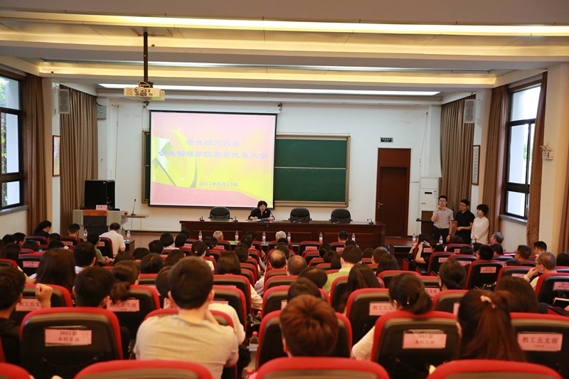 6月13日下午14:30,公共管理学院在望江校区全国干部教育培训基地一号演播厅召开党员代表大会,选举产生学院出席四川大学第八次党代会代表候选人。会议由学院党委书记姜晓萍同志主持,学院两委委员、离退休党员代表、在职教职工党员代表和学生党员代表及相关工作人员120余人参加了会议。