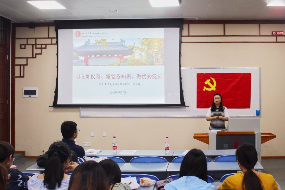 4月27日晚7:00,公共管理学院第一期学生党员能力提升班第四次行课暨结业典礼在望江东二教106教室举行。学院党委副书记兼纪委书记杨磊老师、校党委组织部马丽萍老师、桑启源老师、学院党政办邓雅芯老师、各年级辅导员及全体学员参加了结业典礼。讲座及典礼由2017级本科辅导员周锐老师主持。