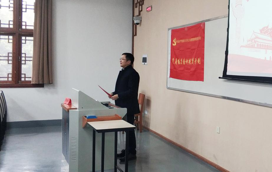 2018年11月9日下午14时30分,公共管理学院第二期党员能力提升计划开班典礼暨第一次课程在望江东二教306教室成功举办。公共管理学院党委委员、院长史云贵教授,学院党委委员、党委副书记兼纪委书记杨磊老师,辅导员罗膑露老师、吴银雪老师、周锐老师、刘晓燕老师,以及一百余名来自公共管理学院本科及研究生年级的党员同志参加了本期学习。公共管理学院第二期党员能力提升班成功邀请了院长史云贵教授担任了首讲嘉宾,学院党委副书记兼纪委书记杨磊老师主持了开班典礼。