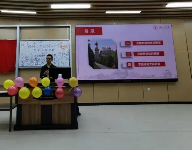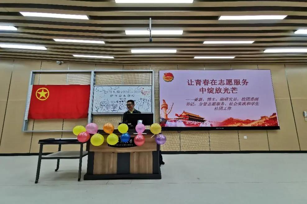 姜新老师以“让青春在志愿服务中绽放光芒”为题给同学带来了精彩授课。姜新老师从志愿服务的全球现状、志愿服务如何开展、志愿服务大赛解读三个方面入手,带领大家深入了解如何系统规范地开展志愿服务工作。首先,姜新老师从国际视角指出,志愿服务正以其突出的社会效益受到越来越多国家和社会的重视,许多国家的志愿服务起步早,规模大,社会效益好,已逐步进入组织化、规模化、系统化的轨道,形成了一套比较完整的运作体制和国际惯例。我国从“2008年志愿服务元年”开始志愿服务逐渐规范化,出现了志愿服务走出国门这一新的探索。接着,姜新老师通过现场互动问答了解到很多同学都参与过自愿服务,指出:四川大学学生志愿服务时数逾300万小时,目前已打造出“五彩石”、“解语花”等代表性志愿项目,产生了良好的示范效益。