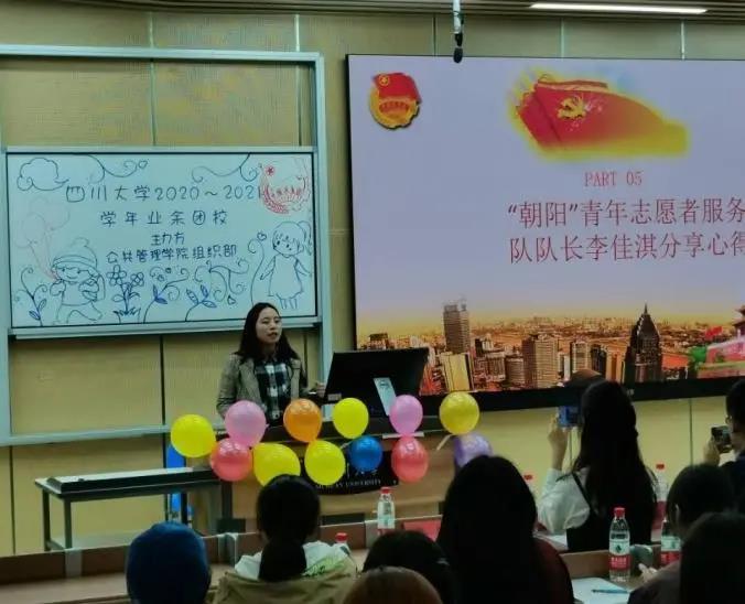 为培育我院学子知行合一的道德品格,弘扬积极向上的奉献精神,倡导以实践行动纪念中国共产党建党100周年,公共管理学院2020年-2021学年团校第二次行课于2021年3月19日19:00-21:00在江安校区综合楼C307成功举办。本次团校邀请到四川大学团委副书记姜新副研究员为同学们授课,团课主题为“立足新时代.展现新作为,以志愿服务弘扬新风正气”。来自我院2020级本科和2019级本科各团支部的共计292位学员参与了本次团课。学院团委书记青杨媚老师、团委学生会各部门主要负责同学也参与了此次活动。为培育我院学子知行合一的道德品格,弘扬积极向上的奉献精神,倡导以实践行动纪念中国共产党建党100周年,公共管理学院2020年-2021学年团校第二次行课于2021年3月19日19:00-21:00在江安校区综合楼C307成功举办。本次团校邀请到四川大学团委副书记姜新副研究员为同学们授课,团课主题为“立足新时代.展现新作为,以志愿服务弘扬新风正气”。来自我院2020级本科和2019级本科各团支部的共计292位学员参与了本次团课。学院团委书记青杨媚老师、团委学生会各部门主要负责同学也参与了此次活动。