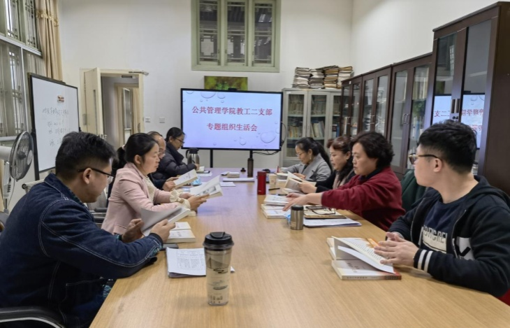 2021年11月19日下午,公共管理学院教工二支部在学院318室开展了集中学习《中国共产党第十九届中央委员会第六次全体会议公报》主题支部活动。学习由支部书记陈丽教授主持,乔健教授、王萍教授、何玲副教授、蔡娜副教授、周文泓副教授、赵跃副教授和王阿陶副研究员等二支部全体党员参加了学习。