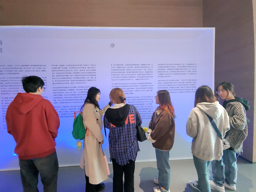 图为支部同志于天府美术馆A馆展览进行美育教育