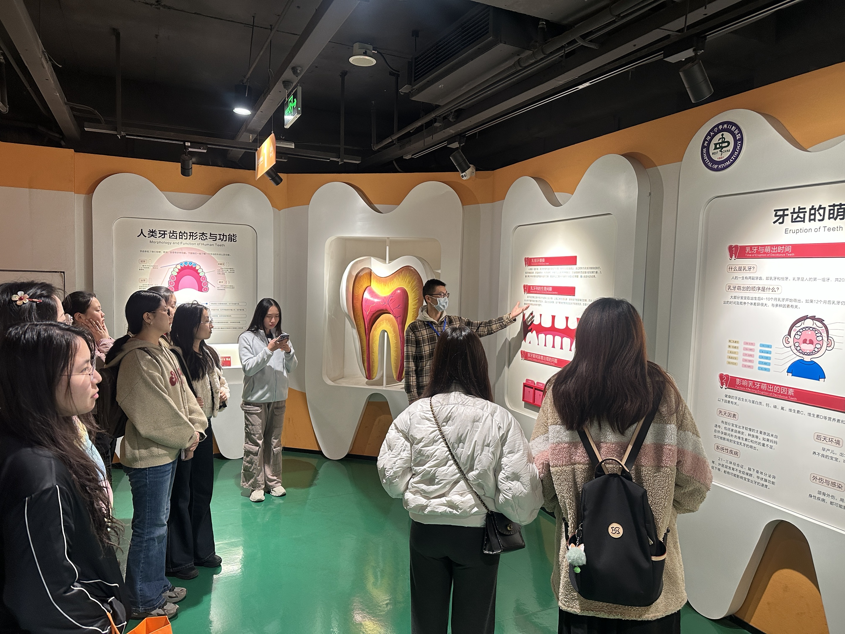 首先,支部代表参观了华西口腔医学博物馆。讲解员系统介绍了口腔结构与功能、日常护理及预防知识,让公共管理学院的同学对口腔医学有了更为直观的认识,切身感受到医学领域的严谨与细致。