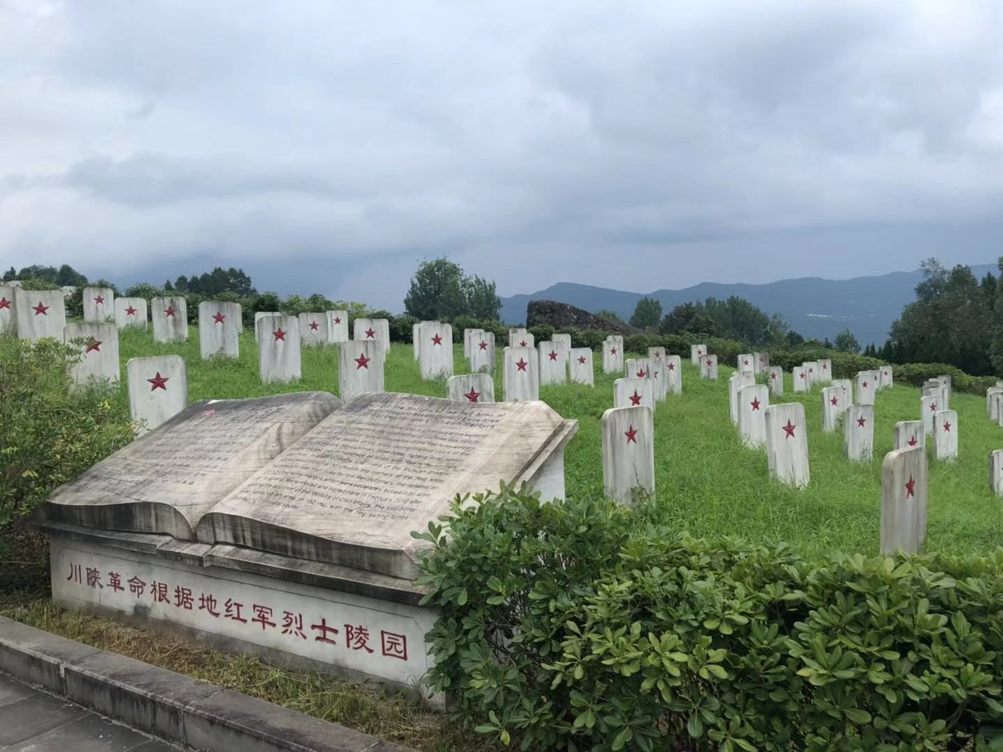8月1日,时值中国人民解放军建军92周年纪念日,实践团队奔赴位于巴中市通江县沙溪镇王坪村的川陕革命根据地烈士陵园,以追寻红军足迹的实际行动向革命先烈致敬。川陕革命根据地烈士陵园始建于1934年,长眠着25048名红军烈士,为中国最大、最早的大型红军烈士陵园。从陵园的任何一个角度向前展望,看到的都是一望无垠的雪白的无名烈士碑,碑上镌刻的红五星如山中杜鹃,鲜艳而明亮。实践团队同学们内心十分震撼,深刻领悟到今天的幸福生活是无数革命先烈鲜血和生命所换来。巍巍青山护陵园,闪闪红星耀长空。