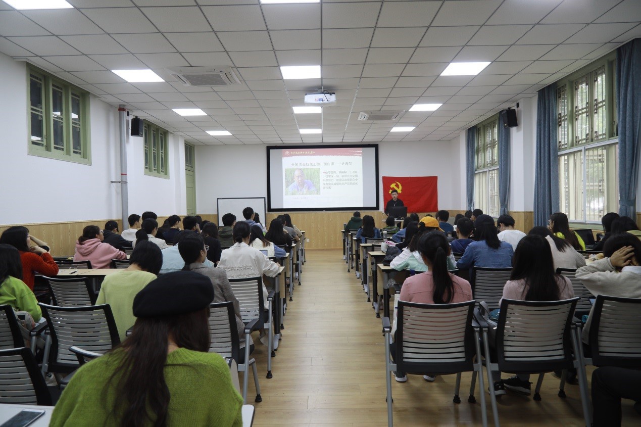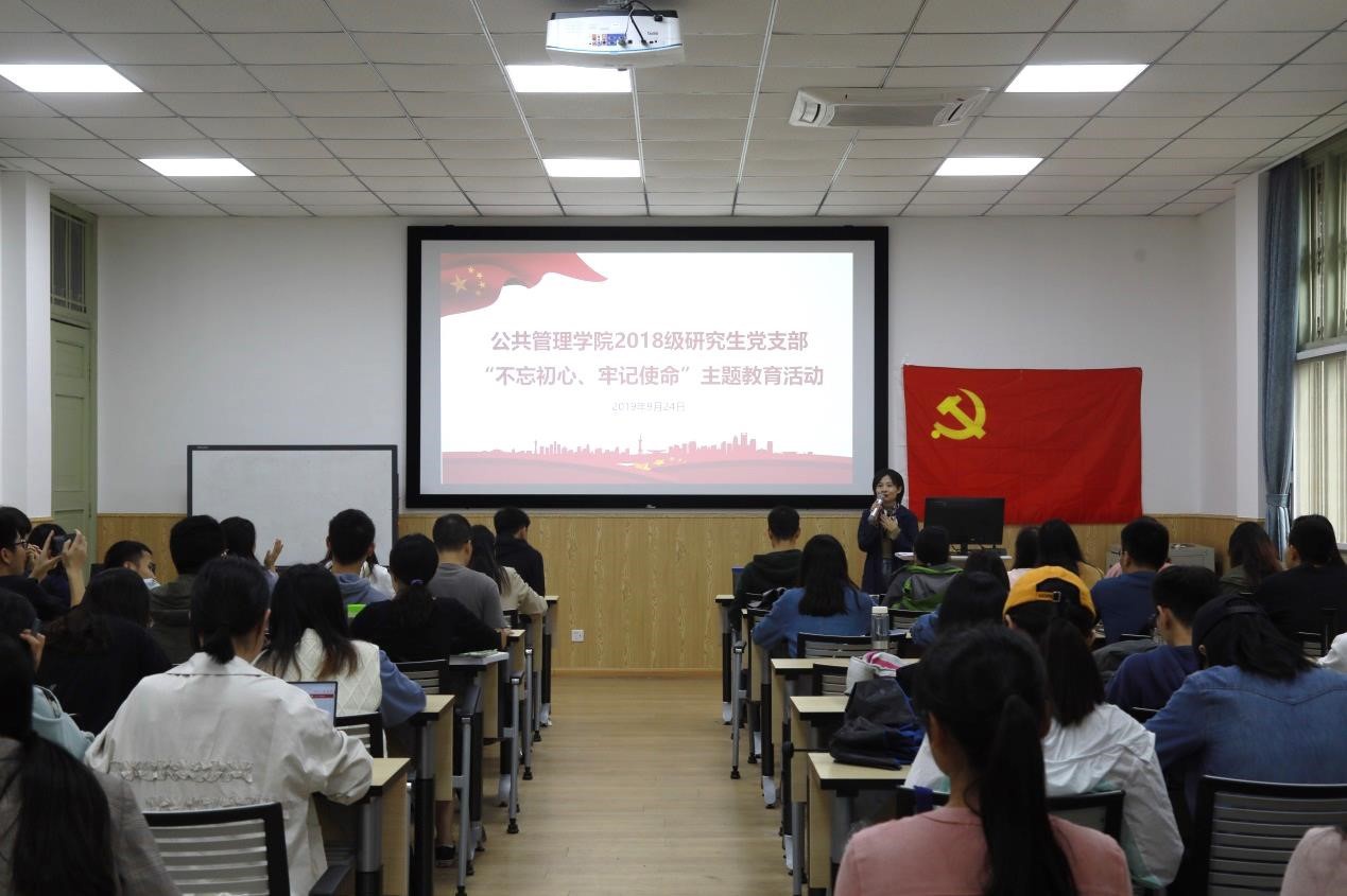 2019年9月24日中午13:00,公共管理学院2018级研究生党支部在学院106教室开展了“不忘初心、牢记使命”主题党日活动。2019年全国青年马克思主义者培养工程高校班学员、全国高校青年党员骨干培训班学员、行政管理专业2017级硕士研究生姚金坤同志为2018级硕士研究生党员进行了“不忘跟党初心,牢记青春使命”的主题讲座分享。本次主题教育活动由2018级研究生第三党支部书记邓雅芯主持,2018级研究生党支部全体党员参加了此次主题党日活动。