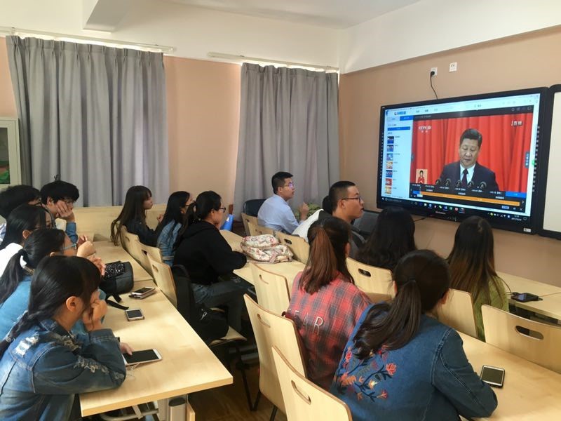 集中收看开幕会实况和听完习近平总书记报告后,学院党委书记姜晓萍同志立即召开学院党委扩大会,对如何学习、宣传和贯彻落实十九大报告精神进行了全面部署。