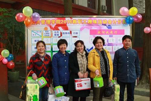 下午3:30,充满着激情和力量的拔河比赛拉开了趣味运动会的序幕。通过激烈角逐,趣味比赛,公共管理工会小组获得拔河比赛第一名;行政工会小组获得跳绳比赛和运球比赛第一名;哲学、心理学、社会学工会小组获得抛球入框第一名。
