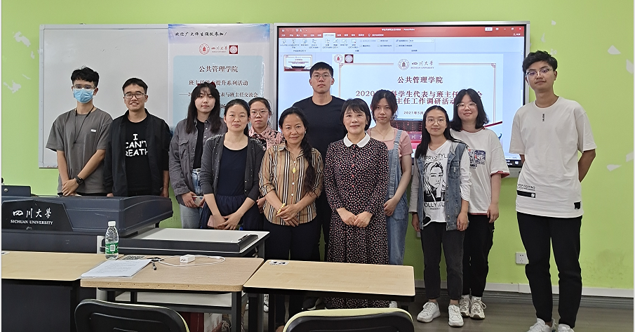 5月14日下午3:00,本次学生代表与班主任交流会在四川大学江安校区综合楼B407展开。首先,我院本科教务办戴政超老师对参会老师和学生做了介绍,并就四川大学班主任制度背景、班主任定位、班主任职责和班主任工作开展等情况做了简要说明。