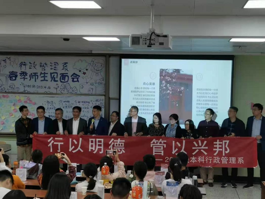 林花扫更落,径草踏还生,适逢春光正好。为加强沟通,增进师生相互了解,4月16日下午4点,行政管理系的在校老师和2019级同学赴江安一教B103教室,参加了2019级春季师生见面会。此次师生见面会由行政管理专业两个班的班委倾心筹划,并按照导师制工作要求,将各位导师与同学分组安排参加全部活动。