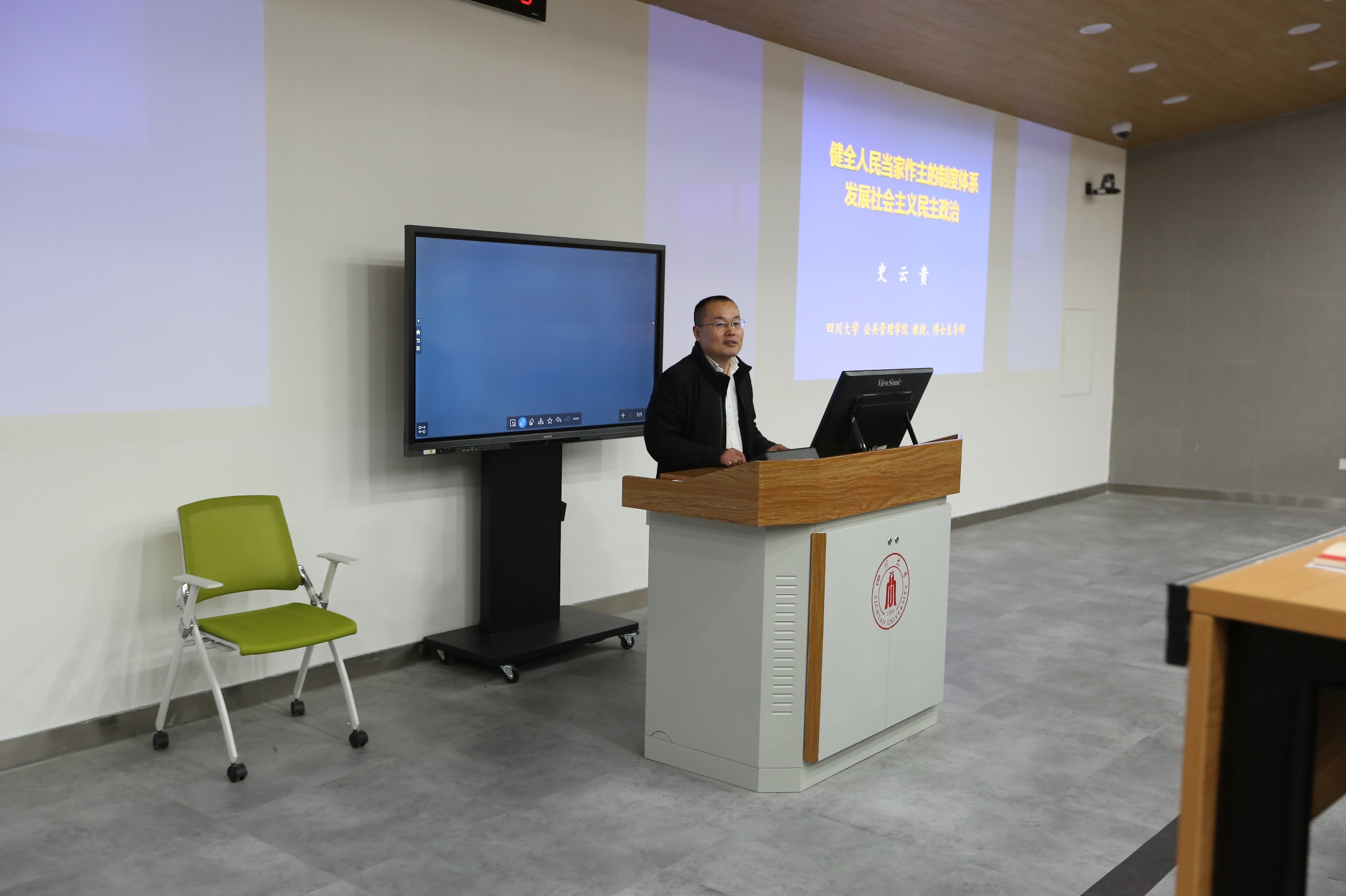 典礼结束后,学院院长史云贵教授为学员们做了题为“健全人民当家作主的制度体系 发展社会主义民主政治”的首场讲座。