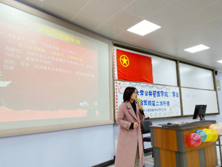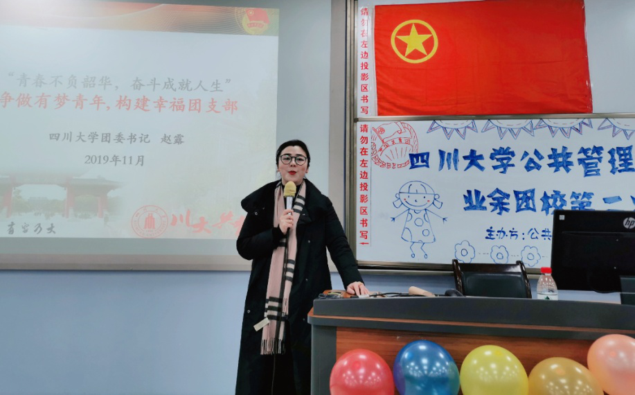 2019年11月30日下午,公共管理学院2019-2020学年团校第二期在四川大学江安校区一教B207成功举办。本次团校邀请到了校团委书记赵露老师和院团委书记青杨媚老师为同学们授课,公共管理学院2019级各团支部近200名团员同学参加了学习。本次团校由公共管理学院分团委组织部承办。