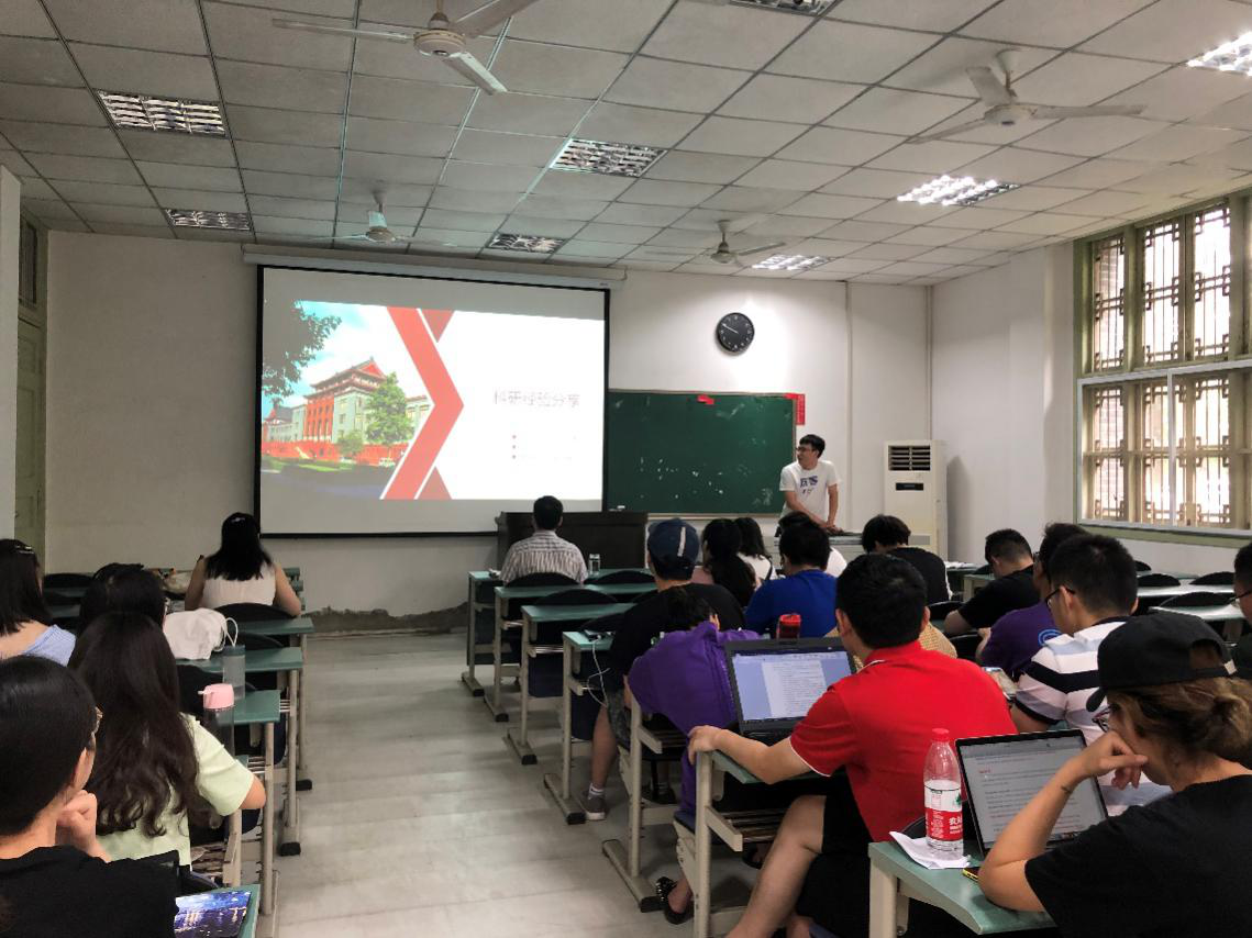 其次,2019级博士生单学鹏结合自身在四川大学的六年学习和生活经验,为同学们介绍自己的科研心得和方法。单学鹏重点介绍了他从本科至今如何在学术上进行积累,以及如何选择正确的学习方法。在他看来,积累知识需要掌握良好的学习方法,包括积极与老师探讨学术、参加学院的学术讲座交流会、善于运用数据库等。同时,他还向同学们介绍了做研究可选择的方法,包括文献可视化分析、计量经济学、阅读外文等、同学们都表示获益匪浅。