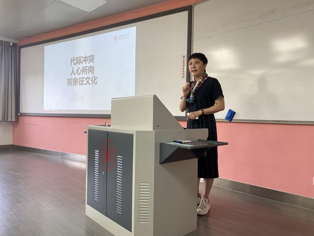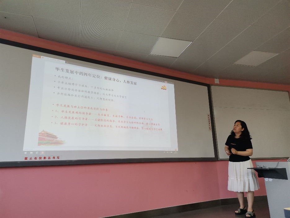 从学习贯彻习近平总书记全国教育大会重要讲话精神引入,兰利琼教授强调了“教育回归本位,教师作为领路人”的重要性。她解读了《四川大学班主任工作指导意见(试行)》,并从具备较高的专业水平、高度的责任感、与社会实践相结合、发挥老师的人格魅力、引导学生的全面健康成长等方面重点讲述了班主任工作的职责。她结合心理学相关知识,通过真实、鲜活的案例,阐述了班主任全方位引导学生成长人才、促进教育事业高水平发展的重要作用。