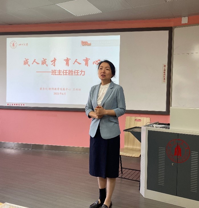 6月4日上午,由公共管理学院、法学院、外国语学院、经济学院联合举办的以“倾心育人,做更好的班主任”为主题的班主任能力提升培训暨四学院班主任工作经验交流会,在四川大学望江校区基础教学楼A404成功举行。参加此次交流会的有教务处副处长兰利琼教授、公共管理学院副院长罗亚玲副教授、经济学院副院长龚勤林教授、外国语学院副院长王欣教授、经济学院吴永红教授、法学院郑莉芳副教授、外国语学院邱惠林副教授、公共管理学院李晓梅副研究员、学院班主任代表、本科教学管理相关人员,共计50余人。会议由罗亚玲副教授主持。