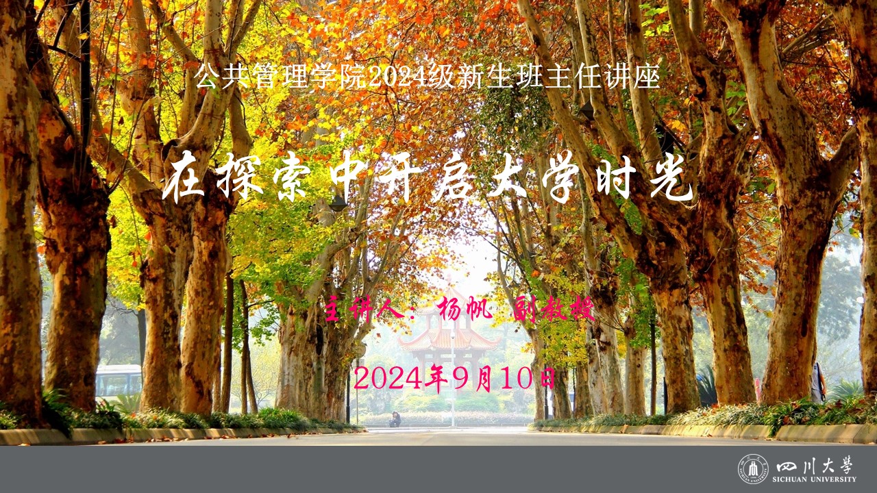 9月10日,“在探索中开启大学时光”公共管理学院2024级新生班主任讲座在江安校区一教A座A222成功举行。此次讲座旨在帮助新生更快适应大学生活,明确学习目标,规划未来方向。