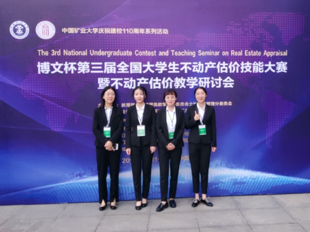 2019年5月11日至5月12日,“第三届全国大学生不动产估价技能大赛暨不动产教学研讨会”在江苏徐州的中国矿业大学举行,我院廖喜生老师指导的2016级土地资源管理专业的四名学生(戴宜畅、杜小寒、何楠锋、黄楷)参加了竞赛,其小组作品《城乡融合背景下农村集体经营性建设用地入市价值评估》成功入围决赛,并最终获得三等奖。