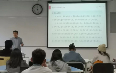 开题报告会分为学生陈述和老师点评两个环节。同学们依次汇报,对毕业论文的选题背景、选题意义、国内外研究现状、研究内容、研究方法与思路等展开陈述。老师们对同学们的开题报告进行仔细审阅,既对其中的亮点与创新给予肯定,也对研究逻辑的合理性、研究对象的准确性、研究方法的恰当性等提出针对性建议。答辩过程学术氛围浓厚、讨论热烈。