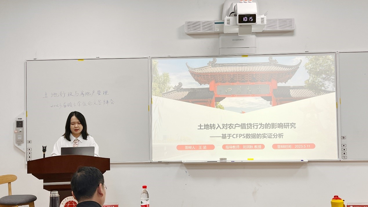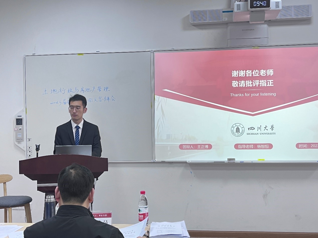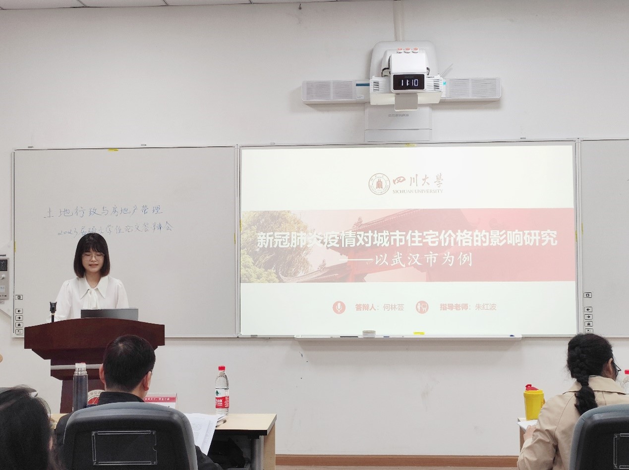 5月11日,四川大学土地行政与房地产管理专业2023届硕士研究生学位论文答辩会在公共管理学院105报告厅顺利举行。