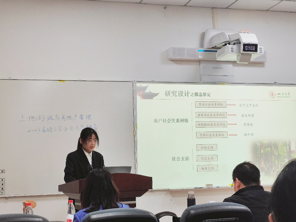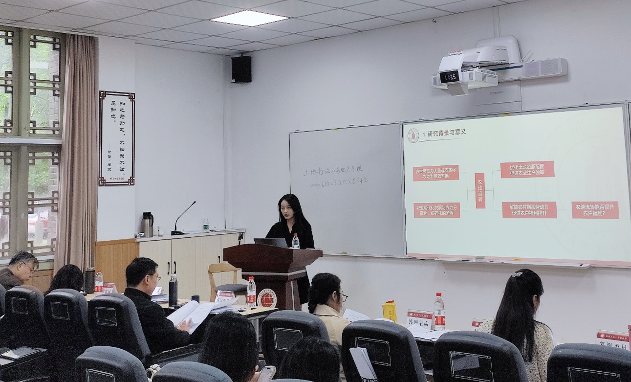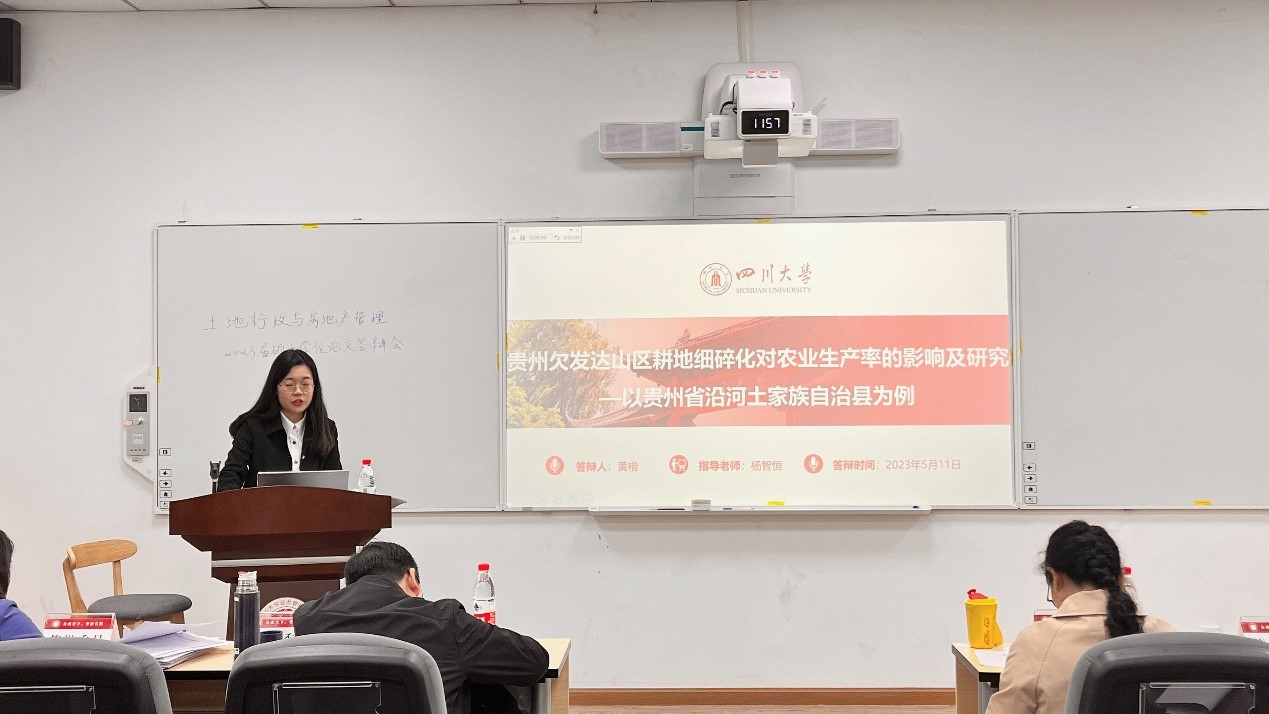 5月11日,四川大学土地行政与房地产管理专业2023届硕士研究生学位论文答辩会在公共管理学院105报告厅顺利举行。