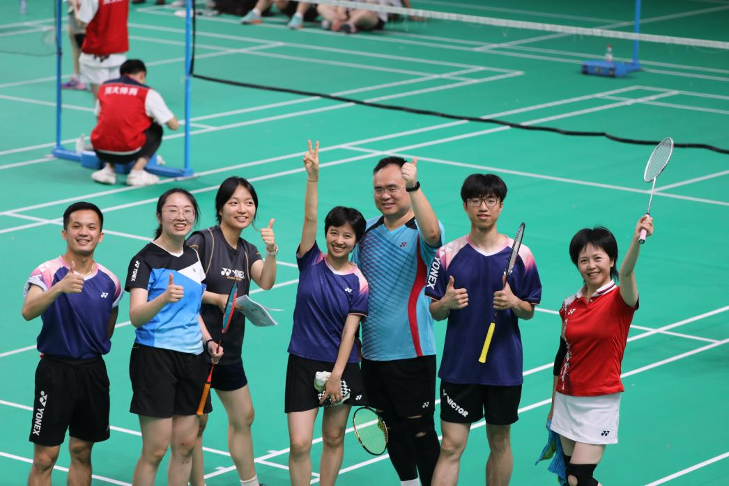 6月14日至15日,四川大学首届“芯原杯”师生羽毛球联赛在望江校区体育馆隆重举行,我院师生羽毛球队从35个学院队中披荆斩棘、勇夺冠军,参赛队员包括研究生导师李敏、吴敏、朱红波、杨峰,辅导员陈萱源,研究生曾彦强、欧阳诗姝、张玉成、何仪颖、黄寅豪。学院工会、研究生会提供全程保障。