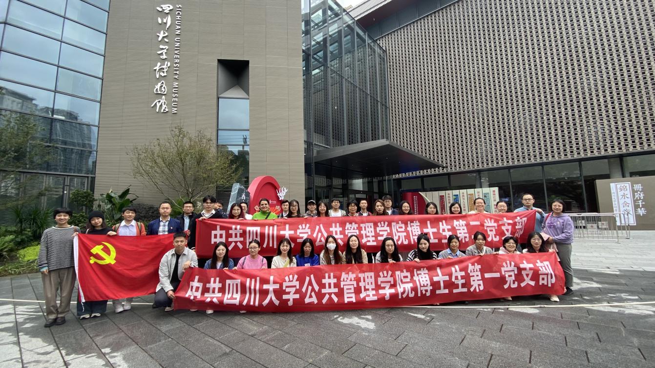 为深入学习贯彻习近平新时代中国特色社会主义思想,进一步巩固主题教育成果,充分认识中华优秀传统文化对赓续中华文脉,推进文化自信自强,铸牢中华民族共同体意识的重要作用。10月19日,公共管理学院博士研究第一党支部与第二党支部在李岚、陈萱源两位老师带领下,赴四川大学博物馆联合开展“弘扬民族文化 坚定文化自信”主题党日活动。
