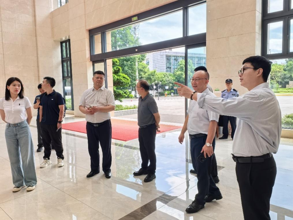 7月2日,调研组转赴长寿区,实地走访了长寿区政府及区委,重点考察其在办公用房租赁、设备家具配置等方面的先进做法。在长寿区机关服务中心的组织下,课题组与自贡市机关事务管理局代表同长寿区机关事务管理局进行了座谈交流。长寿区机关事务管理局详细介绍了其在行政事业单位国有资产数字化管理方面的实践成果,与会各方围绕国有资产数字化管理的政策落地、平台运行机制、标准体系建设等内容进行了深入探讨。